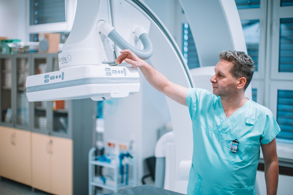 Naše oddělení disponuje nejmodernější digitální technikou, která zajišťuje vysokou kvalitu obrazu při současné minimalizaci radiační zátěže. Podílíme se na diagnostice širokého spektra onemocnění a spolupracujeme se všemi klinickými obory nemocnice. Součástí oddělení je také rozvoj intervenčních metod, které umožňují miniinvazivní zákroky vedené zobrazovacími technikami.